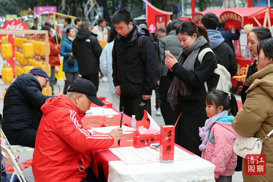 在現(xiàn)場(chǎng)感受到“濃濃年味”的市民杜洋說:“這次活動(dòng)特別熱鬧,特別有年味。書法老師還給我寫了對(duì)聯(lián),已經(jīng)很多年沒有收到這種手寫對(duì)聯(lián)了,心情非常激動(dòng)。”