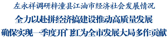 調(diào)研中,左永祥聽取了兩縣(市)貫徹落實中央和省委經(jīng)濟工作會議精神、市委八屆九次全會精神情況,以及今年工作打算等情況匯報,對取得的工作成效給予肯定。他強調(diào),梓潼、江油發(fā)展基礎(chǔ)堅實、勢頭良好,要繼續(xù)保持專注發(fā)展戰(zhàn)略定力,細化對接落實國省一攬子增量政策,以更加務(wù)實舉措鍛長板揚優(yōu)勢、補短板趕進度,保持“開局就發(fā)力、起步就沖刺”的勁頭,全力抓好一季度經(jīng)濟工作,為全市發(fā)展大局貢獻更多力量。要立足資源稟賦和產(chǎn)業(yè)基礎(chǔ),大力推進新型工業(yè)化,把發(fā)展特色優(yōu)勢產(chǎn)業(yè)和戰(zhàn)略性新興產(chǎn)業(yè)作為主攻方向,加快推進“智改數(shù)轉(zhuǎn)”步伐,因地制宜加快發(fā)展新質(zhì)生產(chǎn)力,推進產(chǎn)業(yè)向高端化、智能化、綠色化發(fā)展。要堅持以項目為中心組織經(jīng)濟工作,積極開展精準專業(yè)招商,努力引進一批附加值高、帶動力強、經(jīng)濟效益好的優(yōu)質(zhì)項目,加快塑造高質(zhì)量發(fā)展新動能新優(yōu)勢。要以文旅助推消費提質(zhì)升級,著力打造獨具特色和標識的文旅融合新產(chǎn)品、新服務(wù)、新業(yè)態(tài),搶抓春節(jié)假期等消費節(jié)點,加快研究推出重點領(lǐng)域促消費刺激措施,著力營造濃厚氛圍,持續(xù)釋放消費活力。要加快推進以縣城為重要載體的新型城鎮(zhèn)化,推動城鄉(xiāng)公共資源均衡高效配置,推進城鄉(xiāng)基礎(chǔ)設(shè)施一體化,不斷提升縣城綜合承載能力和服務(wù)功能,增強中心鎮(zhèn)輻射帶動力。要更好統(tǒng)籌發(fā)展和安全,抓實抓好安全生產(chǎn)、森林草原防滅火和防災(zāi)減災(zāi)工作,強化民生服務(wù)保障,有效化解各類矛盾糾紛和風險隱患,確保社會大局和諧穩(wěn)定。