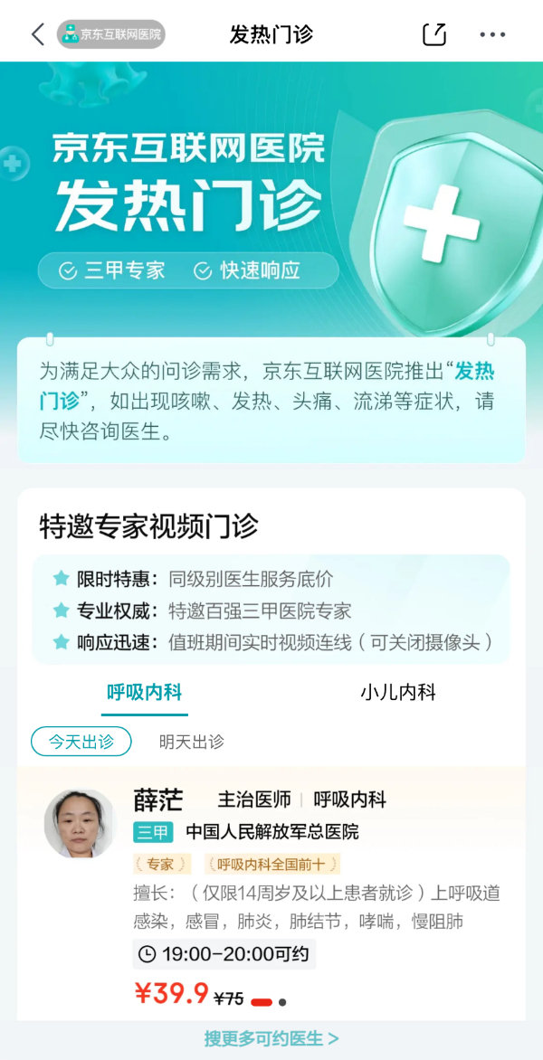 面對(duì)流感就醫(yī)壓力,京東互聯(lián)網(wǎng)醫(yī)院承擔(dān)起重要的分流作用。今年,京東互聯(lián)網(wǎng)醫(yī)院專(zhuān)門(mén)開(kāi)設(shè)了發(fā)熱門(mén)診與“流感關(guān)愛(ài)專(zhuān)區(qū)”,不僅為兒童、老人等重點(diǎn)人群提供發(fā)熱門(mén)診服務(wù),還能通過(guò)線(xiàn)上開(kāi)檢驗(yàn)單,幫助患者實(shí)現(xiàn)“在線(xiàn)問(wèn)診、上門(mén)檢驗(yàn)、醫(yī)生診斷、送藥到家”的一站式就醫(yī)體驗(yàn),大大降低線(xiàn)下就醫(yī)交叉感染的風(fēng)險(xiǎn)。用戶(hù)只需在京東APP上搜索“問(wèn)醫(yī)生”,或者搜索“發(fā)熱門(mén)診”,就可以隨時(shí)隨地在線(xiàn)上找到合適的醫(yī)生。數(shù)據(jù)顯示,進(jìn)入1月以來(lái),京東互聯(lián)網(wǎng)醫(yī)院呼吸道疾病相關(guān)問(wèn)診量環(huán)比上周提升60%。