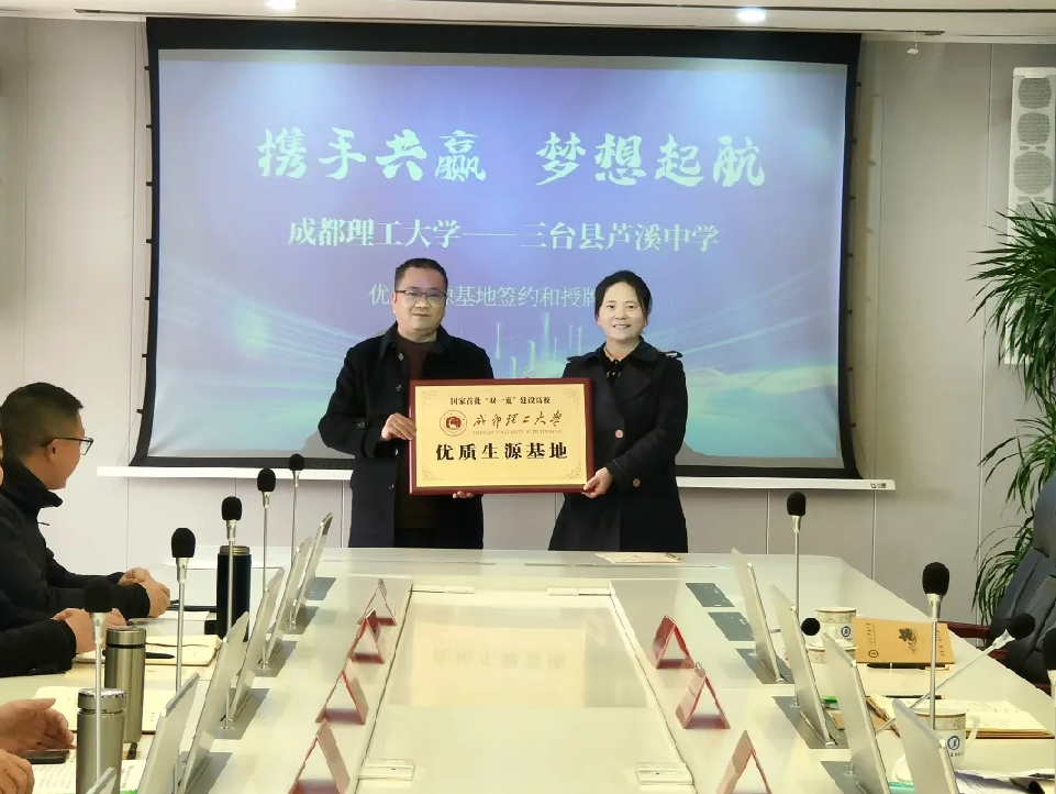 2025年1月13日,成都理工大學(xué)在三臺(tái)縣蘆溪中學(xué)隆重舉行了以“雙向奔赴,合作共贏”為主題的“優(yōu)質(zhì)生源基地”簽約授牌儀式。成都理工大學(xué)招生就業(yè)處處長(zhǎng)陳國(guó)華一行5人,三臺(tái)縣教體局黨組成員胡運(yùn)軍,蘆溪中學(xué)黨委書記任雙全,黨委副書記、副校長(zhǎng)尹家兵參加儀式。