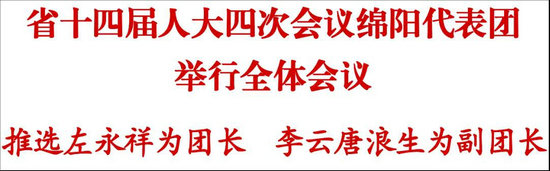 綿陽(yáng)新聞網(wǎng)訊成都專電 1月19日,省十四屆人大四次會(huì)議綿陽(yáng)代表團(tuán)在駐地舉行全體會(huì)議,推選副省長(zhǎng)、市委書記左永祥為綿陽(yáng)代表團(tuán)團(tuán)長(zhǎng),市委副書記、市長(zhǎng)李云和市人大常委會(huì)主任唐浪生為副團(tuán)長(zhǎng)。