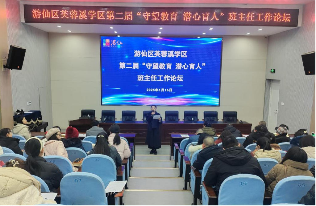 為了進一步優(yōu)化班級管理策略,提升班主任潤心育人、管理班級的能力,促進班主任之間的經(jīng)驗分享。2025年1月16日,游仙區(qū)芙蓉溪學區(qū)第二屆“守望教育 潛心育人”班主任工作論壇在綿陽市萬達學校舉行。此次論壇由彭明慧老師主持,綿陽市萬達學校黨支部書記、校長任明琨,副校長趙靜以及全體班主任參加活動。