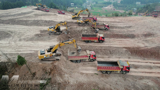 1月16日,記者在G247三臺(tái)縣永明至花園公路工程標(biāo)頭段建設(shè)現(xiàn)場(chǎng)看到,挖掘機(jī)、裝載機(jī)、運(yùn)輸車有序忙碌,巨大的轟鳴聲中,一段路基雛形漸漸呈現(xiàn)。