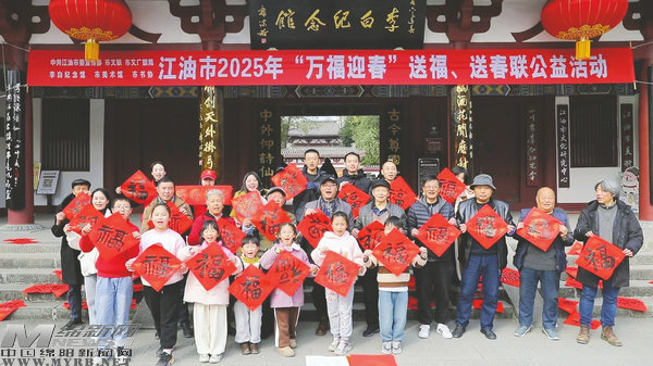 近日,綿陽書法家協(xié)會的專家以及江油市書法家協(xié)會的會員,在江油大劇院、李白紀念館為市民、游客寫春聯(lián)送祝福。書法家們拿出早已準備好的筆墨、紅紙,揮毫潑墨,一副副寓意吉祥的春聯(lián)和“福”字躍然紙上,簡單的文字承載著人們對新年的美好祝愿,為即將來臨的春節(jié)增添了濃濃的喜慶氣氛。