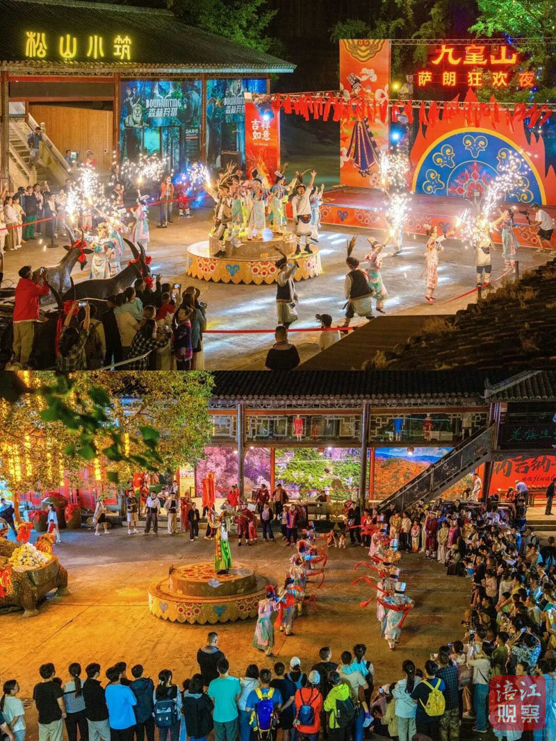 九皇山景區(qū)“羌韻薩朗·篝火狂歡”第九屆薩朗狂歡活動吸引大量游客;