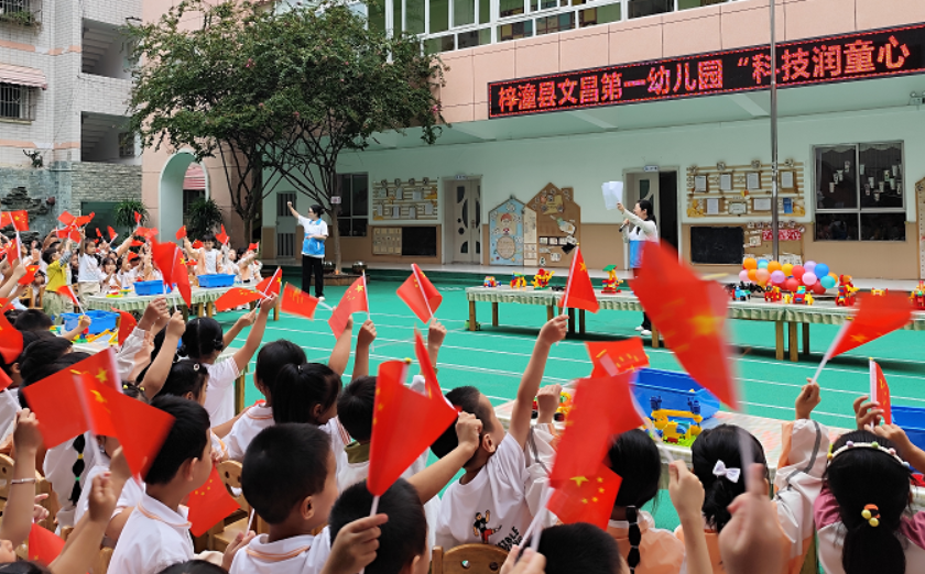 活動現(xiàn)場,六足機器人率先亮相,伴隨著歡快的音樂,靈活轉(zhuǎn)身、穩(wěn)步爬坡,每一個精準(zhǔn)動作都引得孩子們歡呼雀躍;緊接著,孩子們專注地搭建編程積木機器人,通過簡易模塊設(shè)置前進、敬禮等指令,一旁的賽跑道上,孩子們親手調(diào)試的機器人飛馳而過,加油聲、歡笑聲此起彼伏,在激烈的競技中悄然培養(yǎng)著邏輯思維與動手能力;最后,無人機騰空而起,緩緩升起國旗,讓孩子們直觀感受到“科技強國”的磅礴力量。