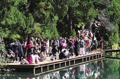 隨著九綿高速王朗收費(fèi)站開(kāi)通,大熊貓國(guó)家公園王朗片區(qū)迎來(lái)了更多渴望親近自然的訪客,“說(shuō)走就走”的秘境之旅成為現(xiàn)實(shí)。初秋的林海、碧藍(lán)的海子和偶遇的野生小動(dòng)物吸引了眾多游客。作為國(guó)家級(jí)自然教育基地,王朗的16條自然教育主題步道及新增的深度體驗(yàn)路線上,隨處可見(jiàn)游客身影。人們趁著國(guó)慶中秋長(zhǎng)假慕名而來(lái),欣賞原生態(tài)美景,深入“熊貓家園”,開(kāi)啟一場(chǎng)與自然的親密對(duì)話。