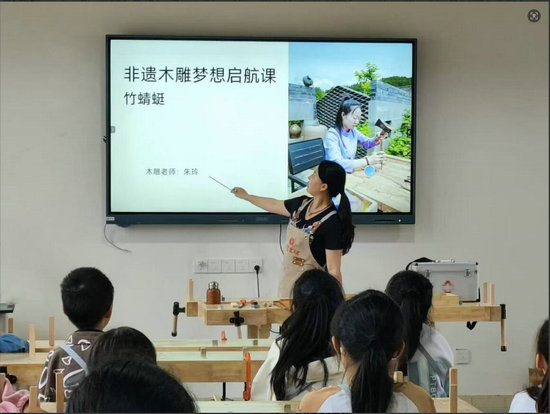 朱玲老師走進鶴林小學開設木雕社團,是該校推動“非遺進校園”、深化素質教育的重要舉措。