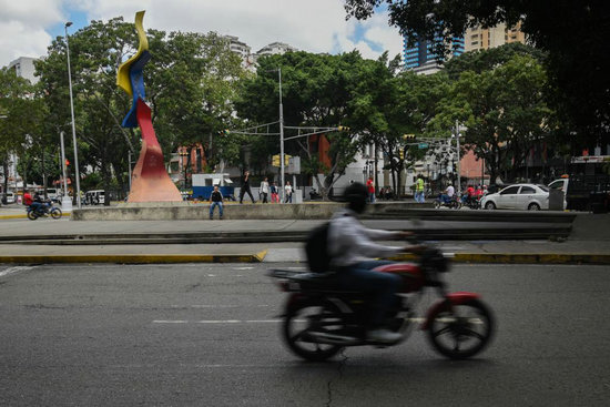 9月22日,在委內瑞拉首都加拉加斯,車流和行人經過市中心的交通干道。新華社發(fā)(馬科斯·薩爾加多攝)