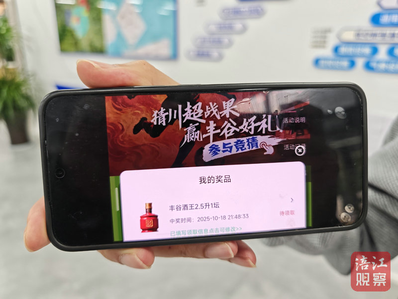 10月20日,記者獲悉,在“川超”阿壩VS綿陽(yáng)的比賽競(jìng)猜活動(dòng)中,市民馮軍在綿陽(yáng)官方新聞客戶(hù)端涪江觀察抽中大獎(jiǎng)——2.5L裝“豐谷酒王”。他是川超聯(lián)賽綿陽(yáng)隊(duì)的忠實(shí)粉絲。