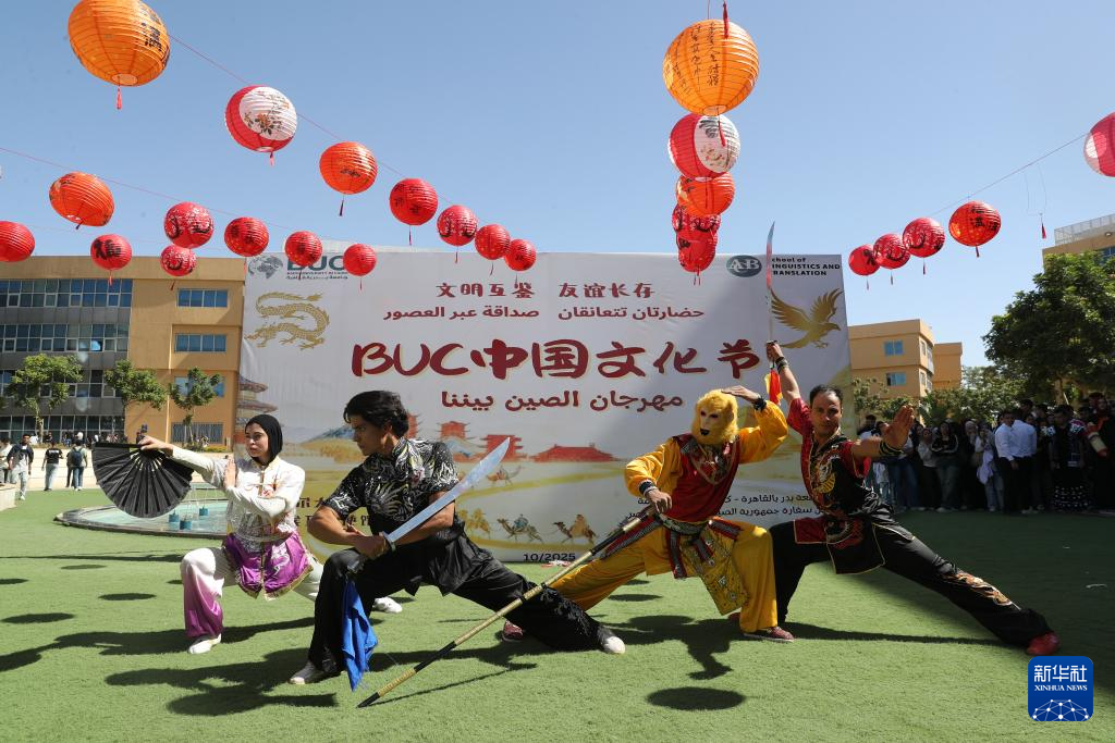 10月20日,在埃及開羅,表演者在開羅巴德爾大學舉辦的中國文化節(jié)上展示中國武術。