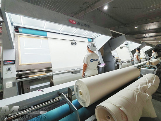 人力資源經(jīng)理劉歡指著生產(chǎn)線介紹:“我們現(xiàn)在擁有192臺(tái)布機(jī),其中一半都是世界先進(jìn)水平的機(jī)械,每天滿負(fù)荷生產(chǎn)下,日產(chǎn)量都在10萬米以上。”這些坯布經(jīng)過智能化質(zhì)檢后,將直接運(yùn)往產(chǎn)業(yè)鏈下一環(huán)節(jié)。