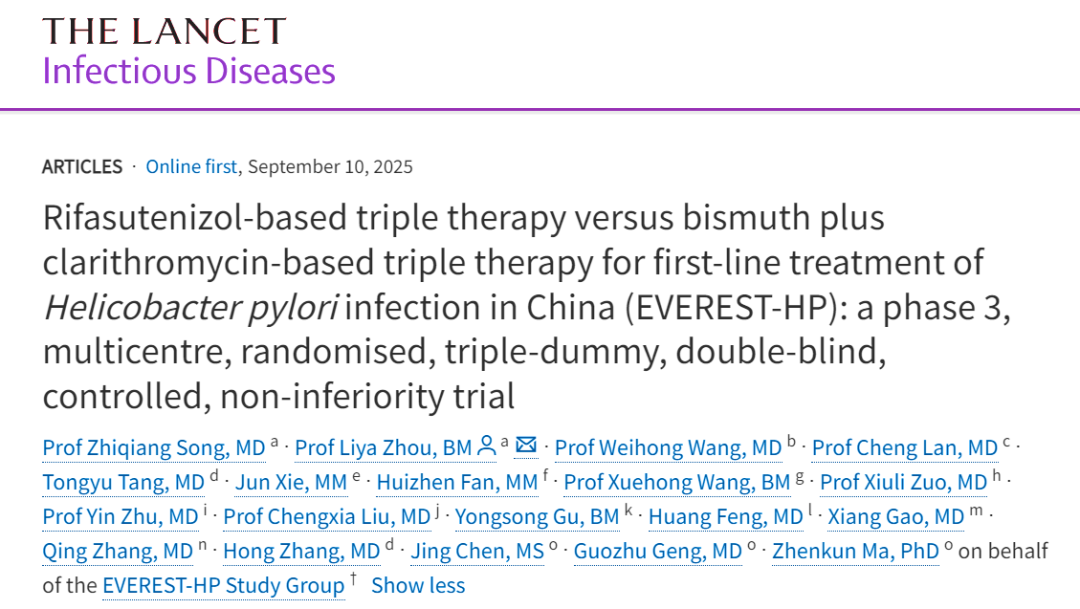 如今,這一嚴(yán)峻的公共衛(wèi)生難題有了破解之鑰:北京大學(xué)第三醫(yī)院消化科周麗雅/宋志強(qiáng)教授團(tuán)隊帶領(lǐng)全國40家醫(yī)療機(jī)構(gòu)消化疾病診療中心研究發(fā)現(xiàn),含利福特尼唑的三聯(lián)方案,讓幽門螺桿菌治療有望重新回歸更簡便的三聯(lián)方案時代,為全球幽門螺桿菌感染者帶來了全新的治療選擇。相關(guān)成果日前于《柳葉刀-感染病學(xué)》在線發(fā)表。
