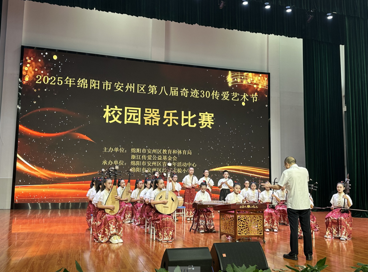 10月16日上午,2025年安州區(qū)第八屆奇跡30傳愛(ài)藝術(shù)節(jié)校園器樂(lè)比賽在沙汀實(shí)驗(yàn)小學(xué)演播廳圓滿落幕。安州區(qū)永盛小學(xué)憑借精湛的民樂(lè)演奏技藝,從眾多參賽隊(duì)伍中脫穎而出,斬獲民樂(lè)特等獎(jiǎng)。