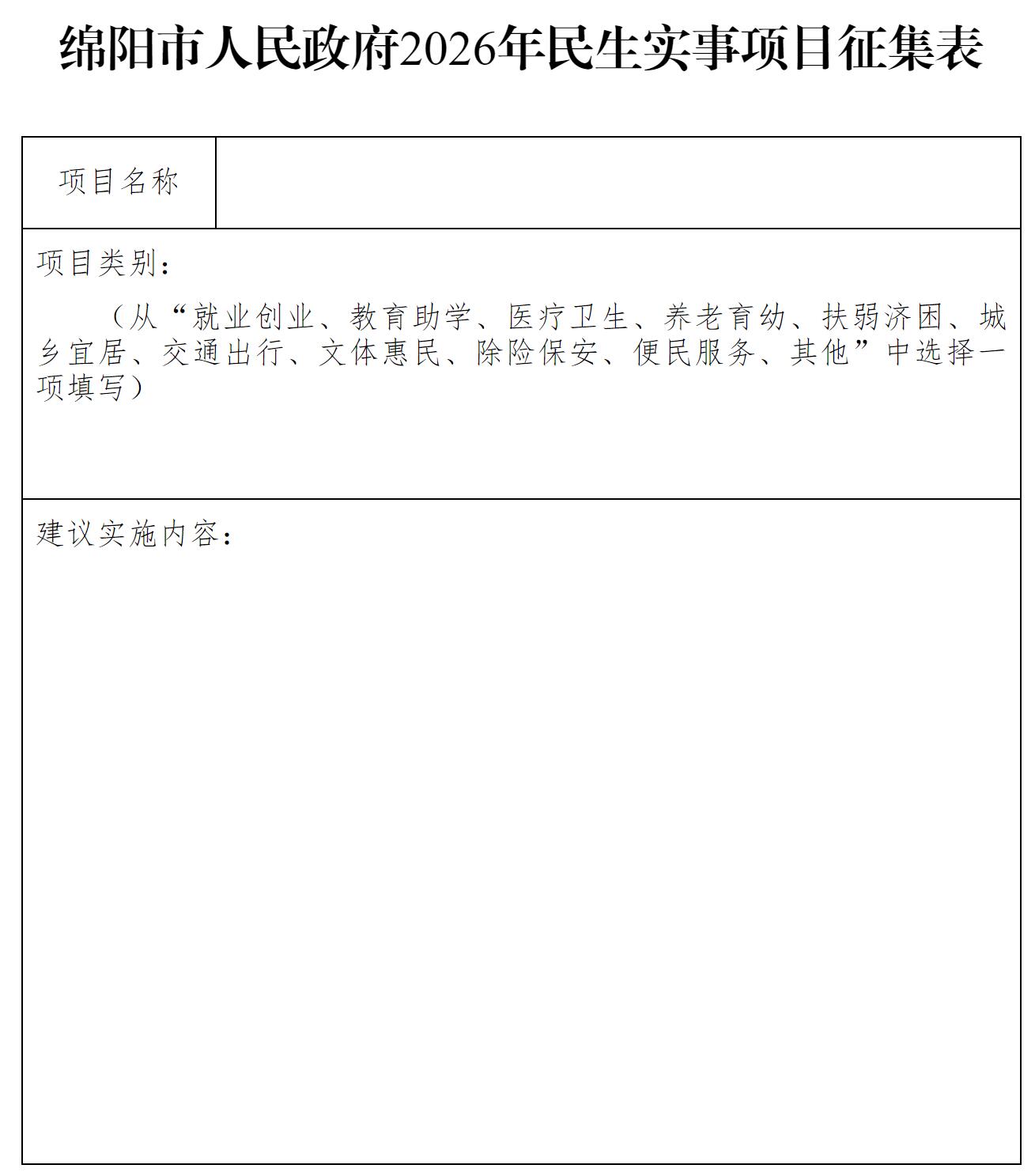 附件:綿陽(yáng)市人民政府2026年民生實(shí)事項(xiàng)目征集表