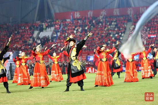 中場休息環(huán)節(jié),體現(xiàn)“川超”拼搏精神及全民參與的足球氛圍的節(jié)目“歡樂足球夢”熱鬧來襲。