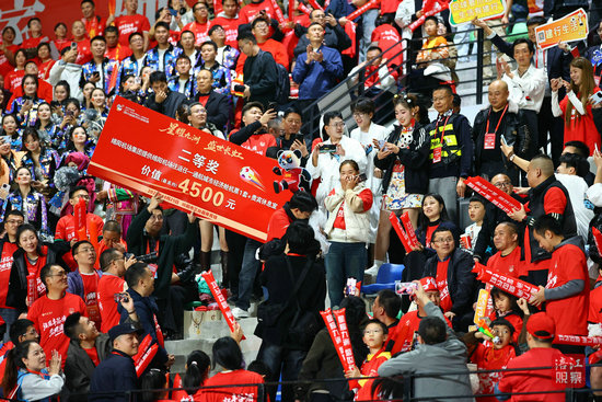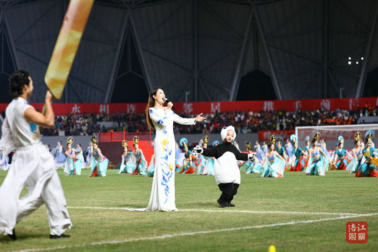 比賽結(jié)束后,近300名演職人員與球員一起和現(xiàn)場觀眾進(jìn)行表演互動,在歌曲《相親相愛》的溫暖旋律中,為本場比賽畫上圓滿句號。