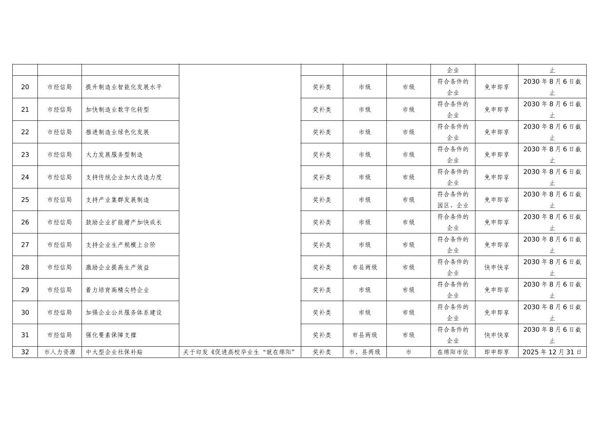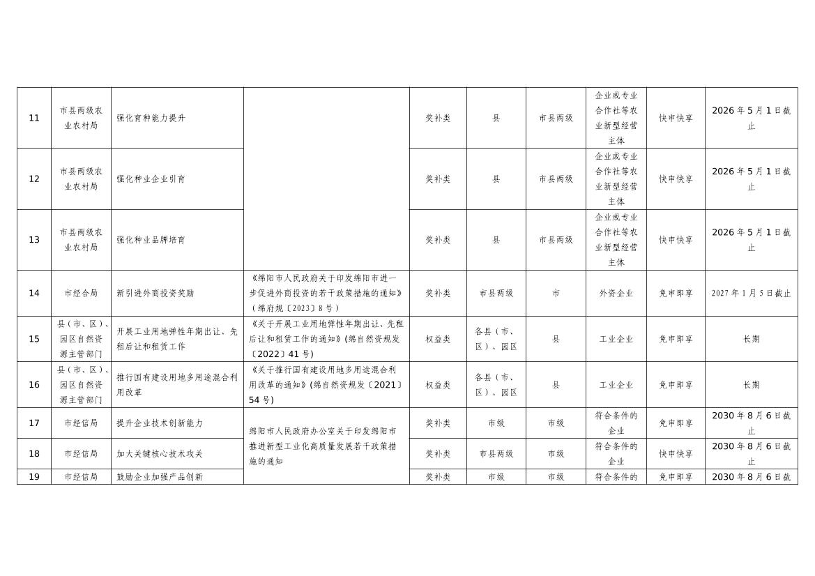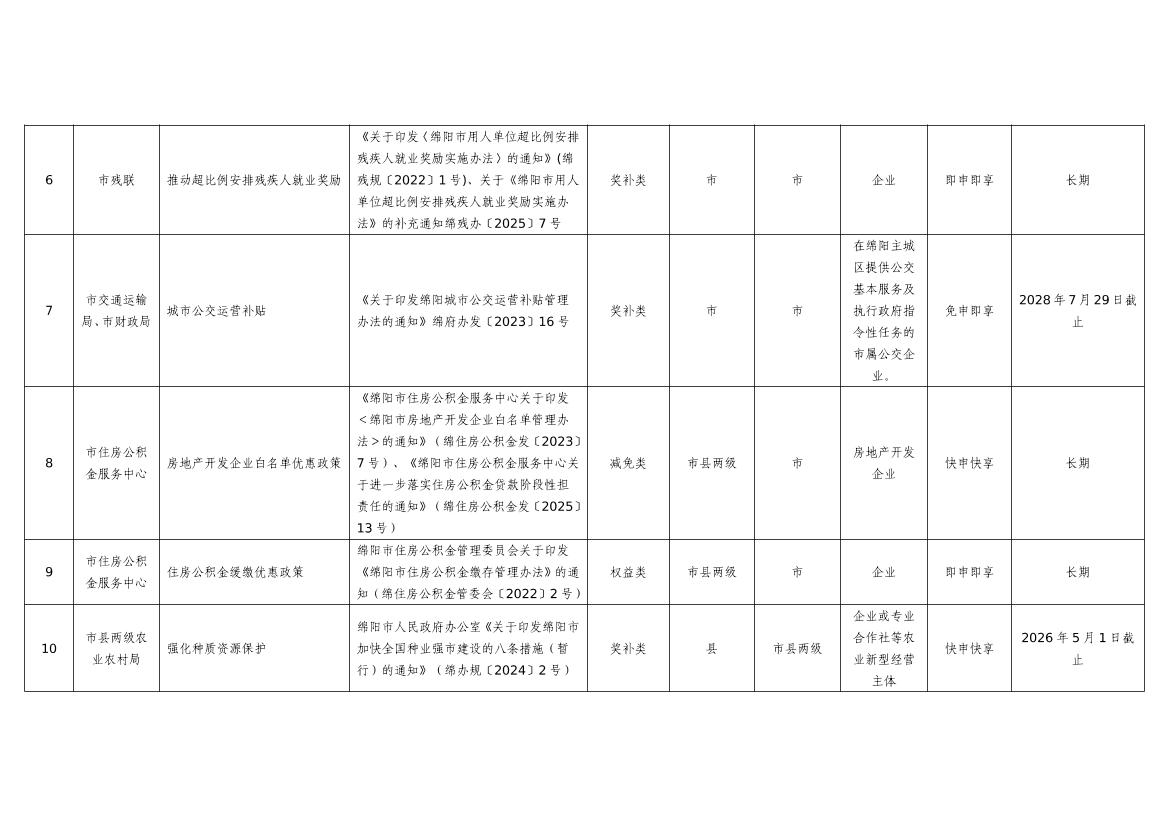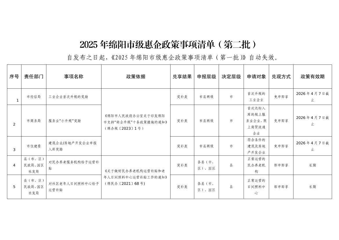 2025年綿陽市級(jí)惠企政策事項(xiàng)清單(第二批)