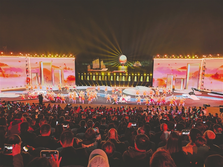 此次活動(dòng)的舞臺(tái)設(shè)計(jì)堪稱一大亮點(diǎn)。超1000平方米的水上舞臺(tái)融入了LED屏幕、激光投影、AI、機(jī)械裝置、無(wú)人機(jī)等多種技術(shù)手段,為觀眾打造了一場(chǎng)全新的視聽盛宴。