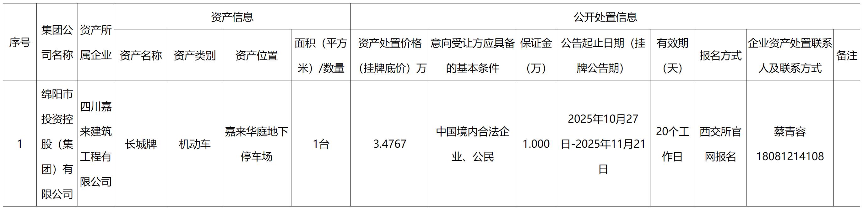 四川嘉來(lái)建筑工程有限公司資產(chǎn)處置公告