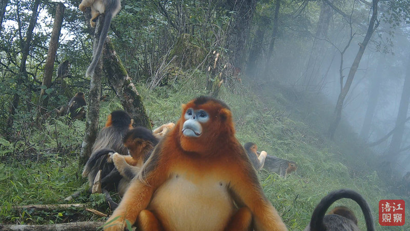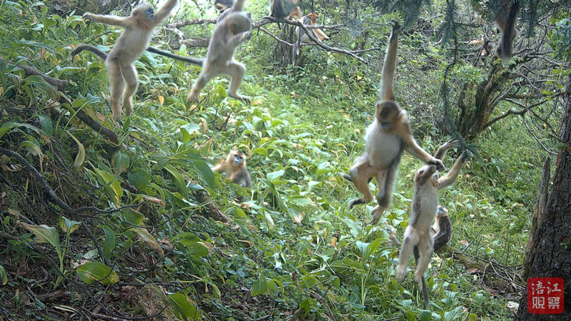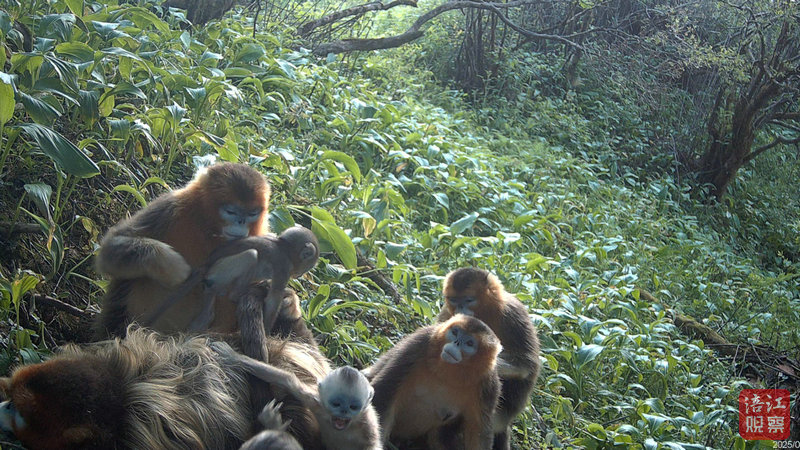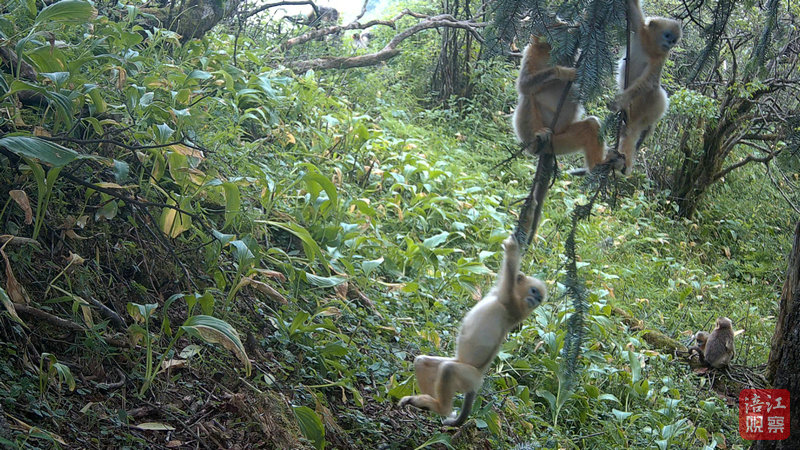 在大熊貓出現(xiàn)地方附近,川金絲猴的“日常”生活同樣鮮活。畫(huà)面中——