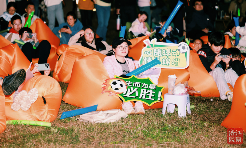 “在這里觀看比賽,聆聽音樂,這種體驗太爽了!”市民劉生華和家人坐在露營帳篷內(nèi),一邊跟著旋律輕唱,一邊緊盯賽場攻防。