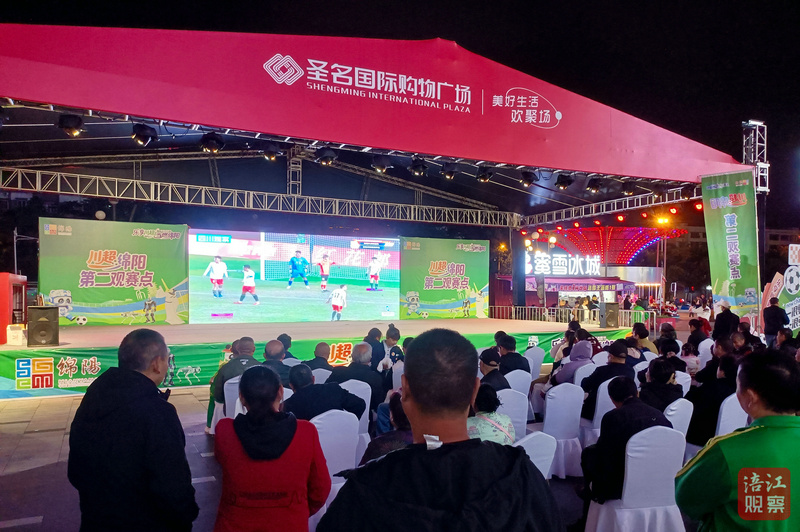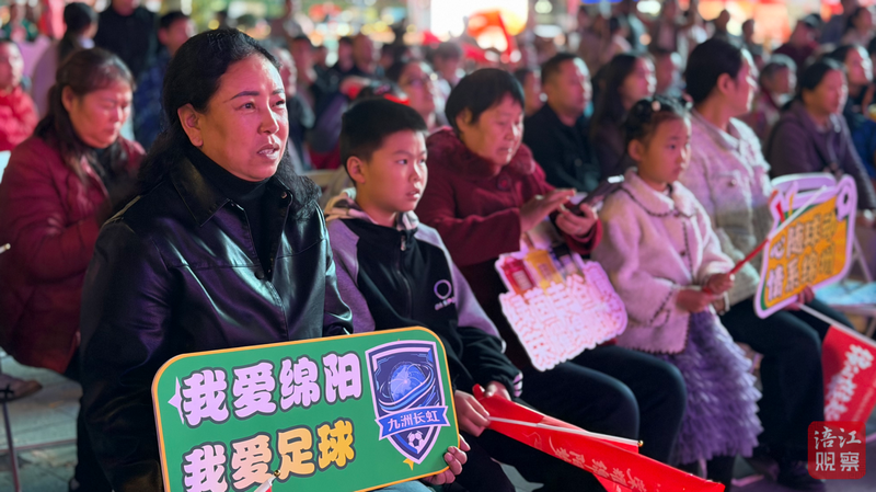 作為綿陽江油市的第二觀賽點,圣名國際購物廣場也是人聲鼎沸、熱鬧非凡。球迷揮舞旗幟吶喊助威,觀眾也紛紛晃動手中的氛圍牌為綿陽隊加油。