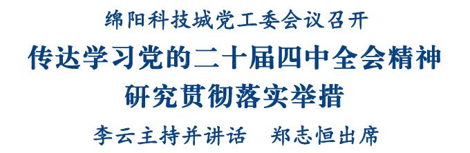 11月2日,綿陽科技城黨工委會議召開,傳達(dá)學(xué)習(xí)黨的二十屆四中全會精神,以及中央和省市有關(guān)會議精神,研究科技城貫徹落實(shí)舉措。市委副書記、市長、科技城黨工委書記李云主持會議并講話。