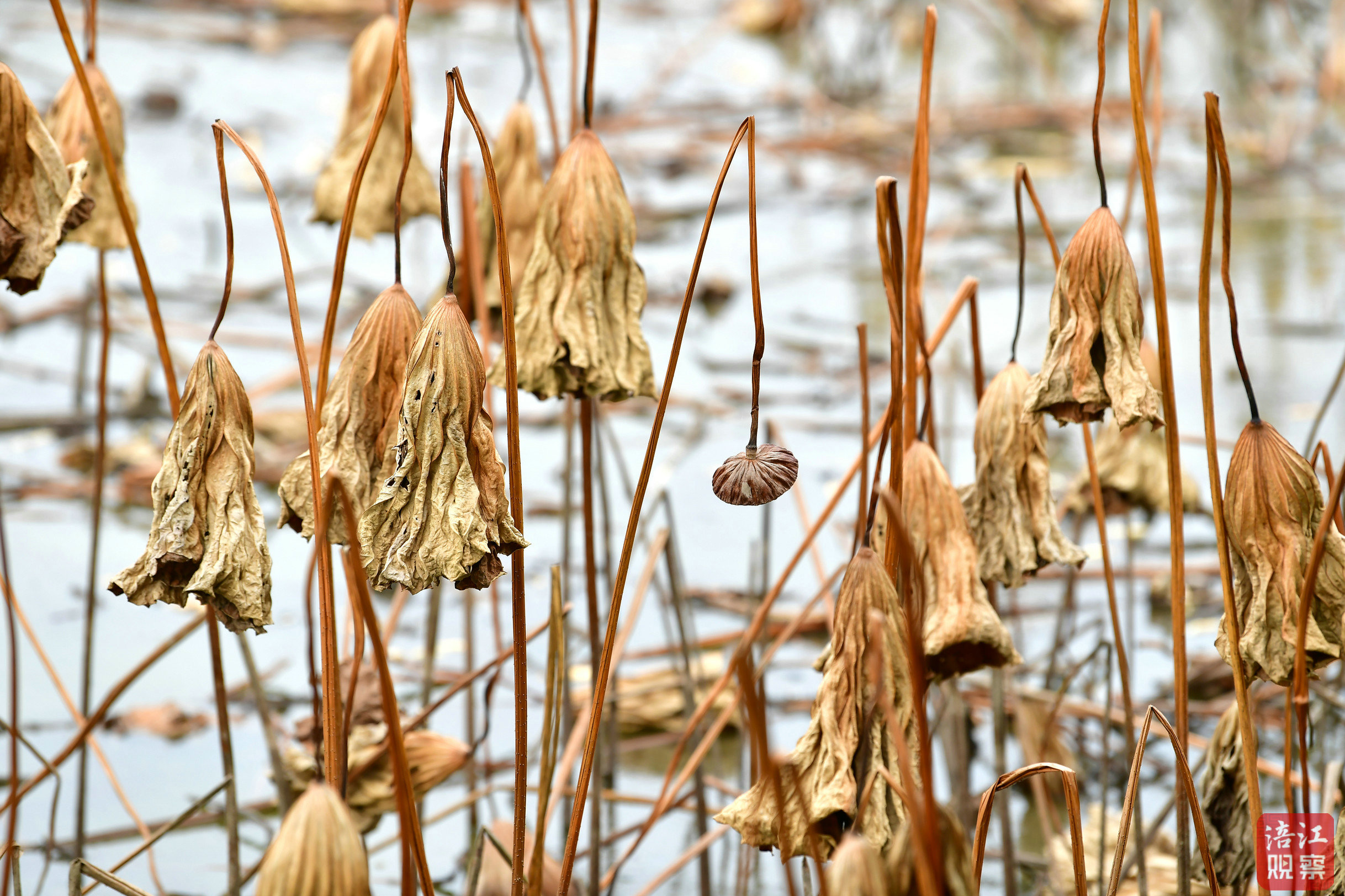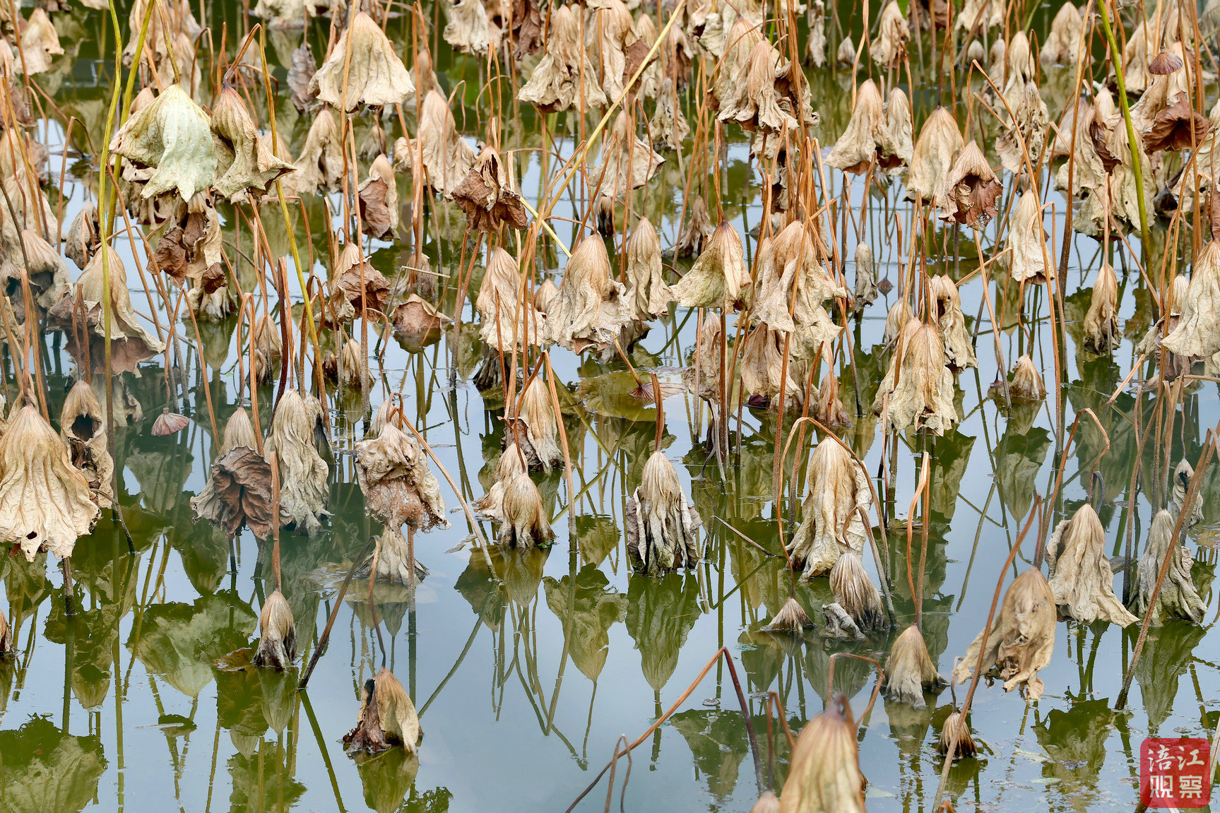 卷曲的荷葉與枯萎的蓮蓬,為深秋時(shí)節(jié)增添了幾分蕭瑟與恬靜。