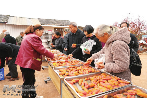 蒸薯區(qū)香氣四溢,村民紛紛前來品嘗。