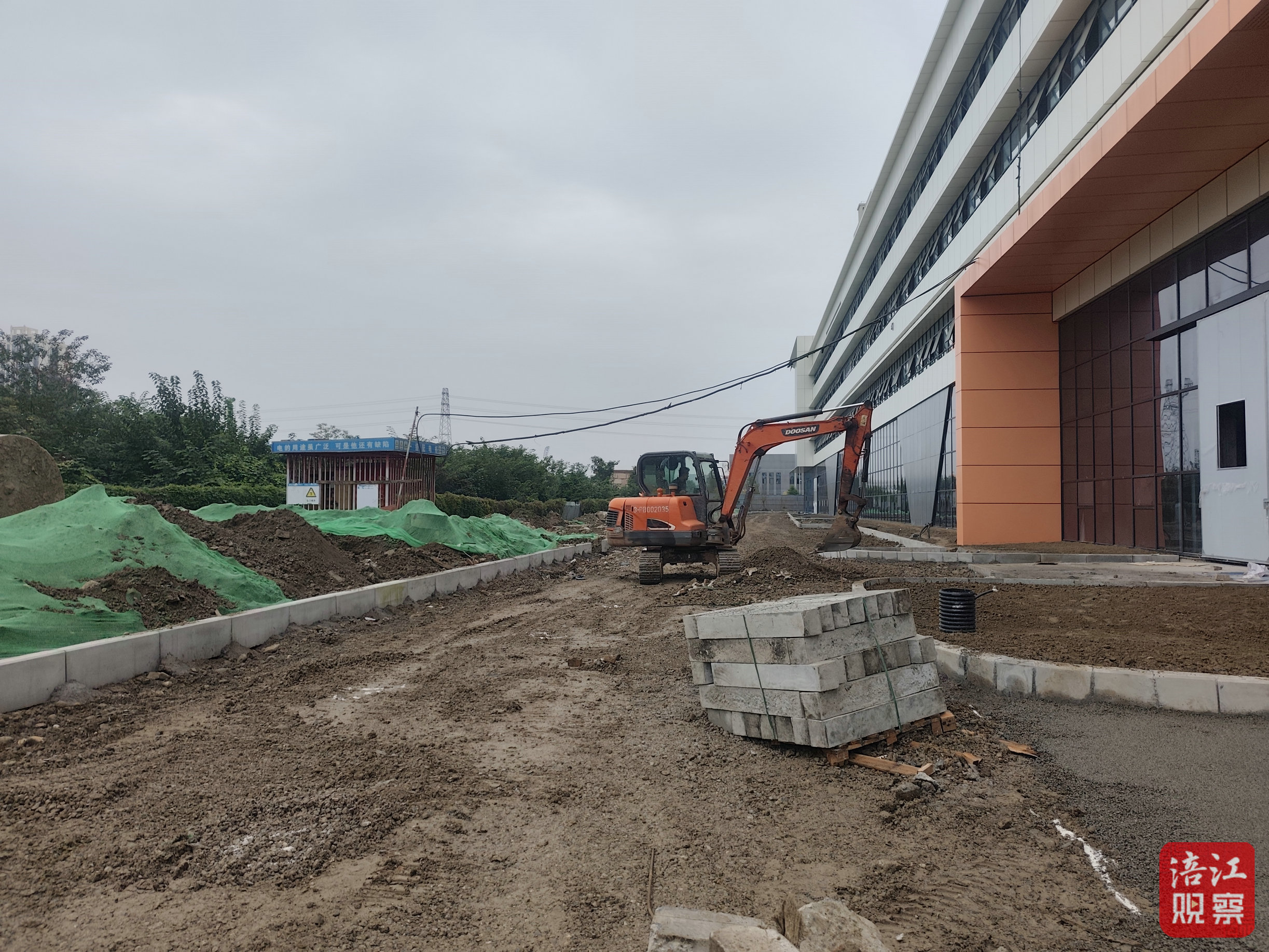 走進(jìn)園區(qū),只見透水混凝土像淺灰色的綢帶,被壓路機(jī)熨得服服帖帖,剛鋪好的路面還帶著濕潤的光澤;挖掘機(jī)和裝載機(jī)默契配合,“鏟斗一揚(yáng)一落”間,把路基整理得平平整整;灑水車給新澆筑的地面“喂水”保養(yǎng),水霧里還飄著水泥的清新味兒;工人們彎腰對(duì)準(zhǔn)位置,“哐當(dāng)”一聲就把污水井蓋穩(wěn)穩(wěn)安妥……機(jī)器的轟鳴、工具的碰撞、師傅們的吆喝聲交織在一起,努力做著“馬上完工”階段的最后“沖刺”。