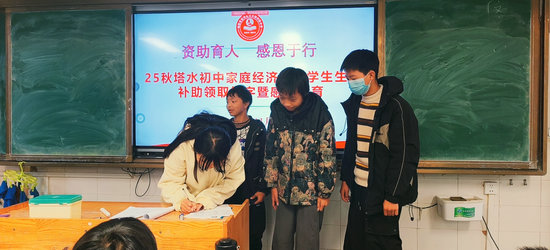 綿陽新聞網(wǎng)訊 11月6日中午,安州區(qū)塔水鎮(zhèn)初級中學(xué)舉行了以“冬日暖陽照校園,資助感恩潤心田”為主題的2025年秋學(xué)生生活補(bǔ)助領(lǐng)取簽字儀式暨“資助育人,感恩于行”主題班會活動。