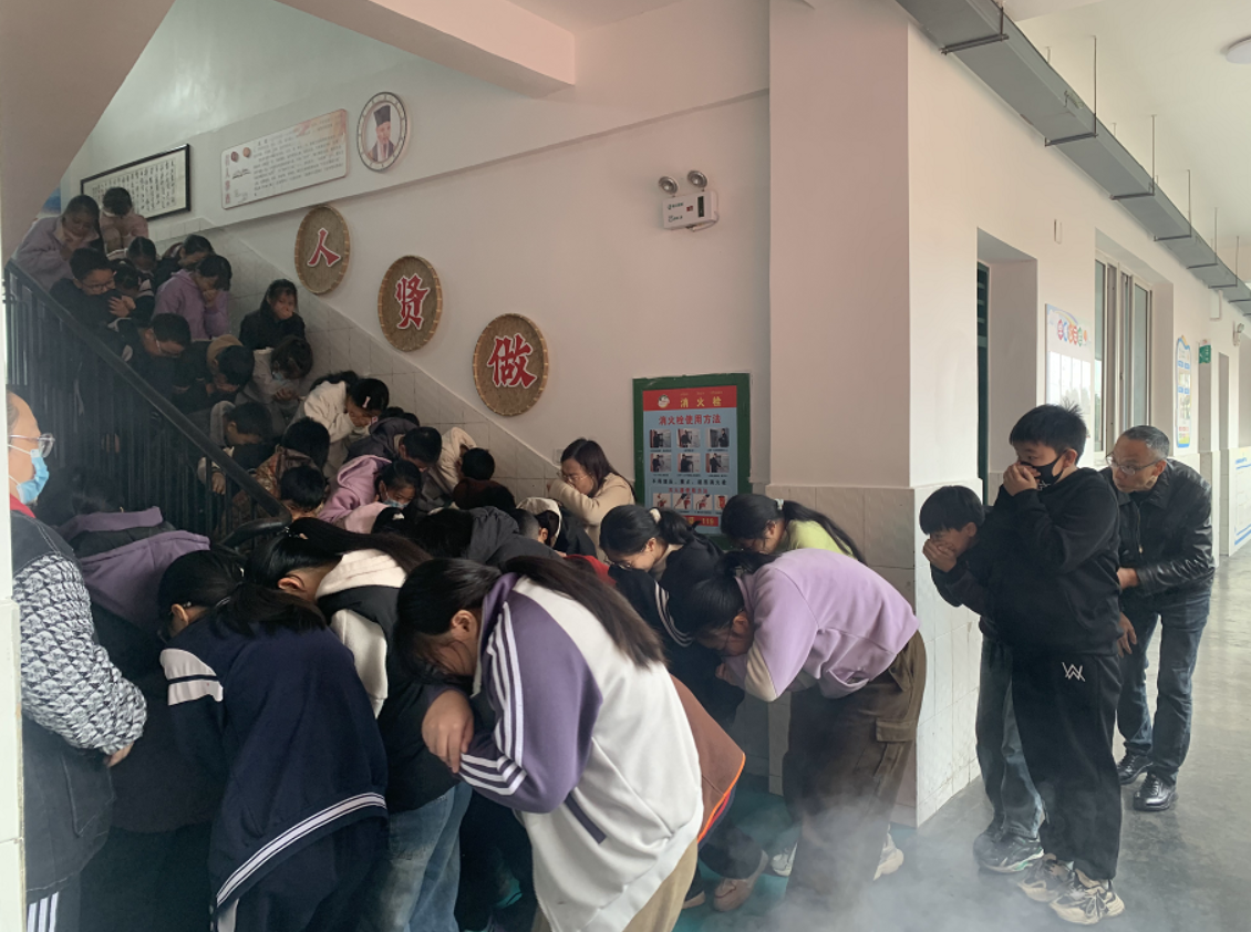 上午10時(shí),消防警報(bào)響起,演練正式開(kāi)始。各崗位教師迅速到位,沉著指揮。同學(xué)們?cè)诶蠋煹膸ьI(lǐng)下,用濕毛巾等捂住口鼻,彎腰低姿,沿預(yù)定路線快速、有序撤離至操場(chǎng)。整個(gè)過(guò)程緊張而不混亂,全校600余名師生僅用不到3分鐘即全部安全抵達(dá)集合點(diǎn),演練達(dá)到預(yù)期效果。