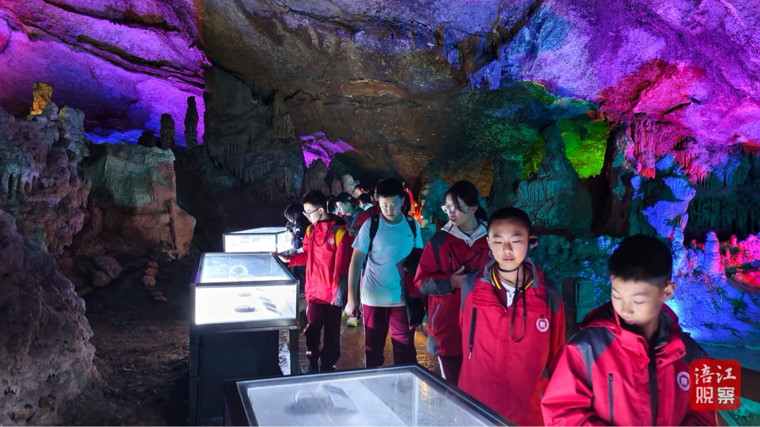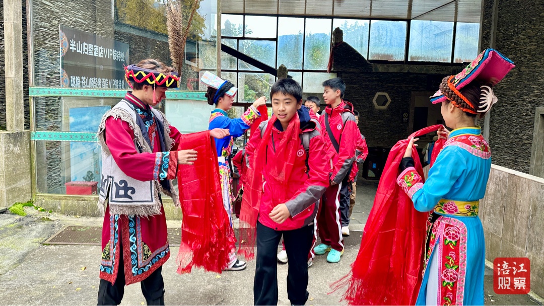 在系列研學(xué)課程中,學(xué)生們通過“指尖羌韻”了解羌族紋飾、學(xué)用羌語,并親手制作羌風(fēng)冰箱貼;“英雄禮贊:大禹”課程生動講述大禹治水歷史,激發(fā)對先賢的敬仰之情;猿王洞內(nèi),大家則化身“地質(zhì)探險家”,實地感受喀斯特地貌的天然奇觀。此外,盤勾技藝實踐與羌族歌舞展演等環(huán)節(jié),也讓學(xué)生沉浸式體驗非遺文化的魅力。