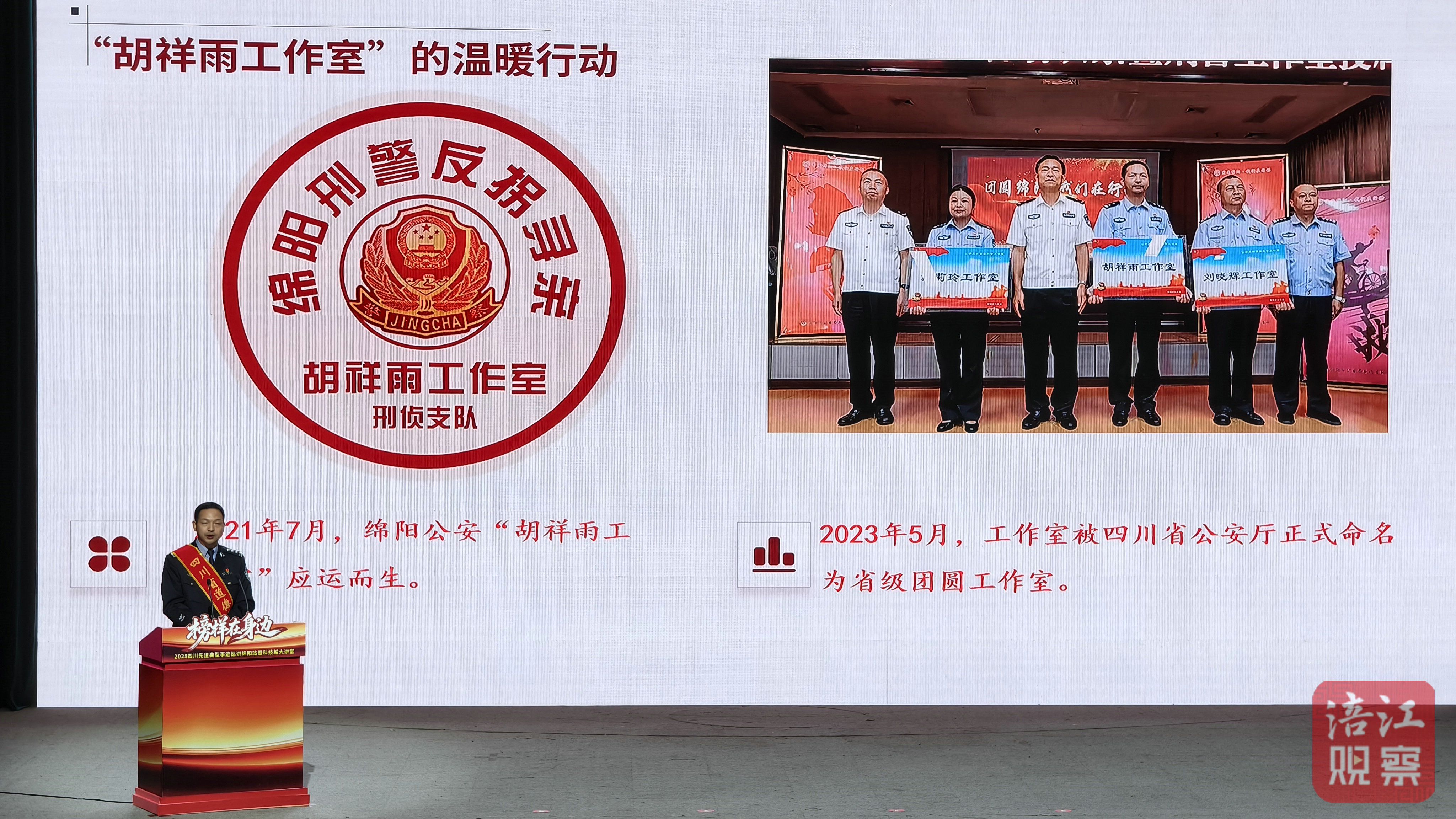 “每面錦旗背后,都是一個離散家庭的重新?lián)肀А?rdquo;綿陽市公安局刑偵支隊(duì)一大隊(duì)教導(dǎo)員胡祥雨的話語質(zhì)樸深情。26年從警生涯中,他從警犬訓(xùn)導(dǎo)員轉(zhuǎn)變?yōu)槿罕娍谥?ldquo;有溫度的胡叔叔”,6年間承接全國尋親求助5萬余次,促成792個家庭團(tuán)圓。當(dāng)他念出被拐者“胡叔叔,我想見我媽”的微信留言時,臺下不少觀眾悄悄擦拭眼角。