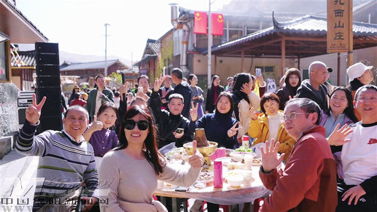 臨近正午,備受期待的長街宴正式開席。近30張圓桌沿主干道整齊排開,與遠山彩林相映成趣,構成一幅極具煙火氣的民俗畫卷。桌上銅火鍋炭火正旺,清亮高湯翻滾沸騰,新鮮牦牛肉、牦牛肚搭配本地高山菌和時令蔬菜,鮮香撲鼻。白馬青年為游客獻上最高待客禮節(jié)“篩糠”,眾人合力將游客輕輕拋起,寓意“拋去塵囂煩惱”;隨后,他們唱響嘹亮的敬酒歌,捧上醇厚青稞酒,舉杯共飲間,賓客與主人的情誼悄然升溫。“這里的風土人情特別獨特,牦?;疱侕r香入味,平武山好水好人更熱情,不愧是天然氧吧。”游客任沛熹難掩喜愛之情。
