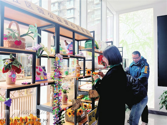 居民在濱江社區(qū)公益愛心義賣區(qū)選購商品。葉亮亮 攝