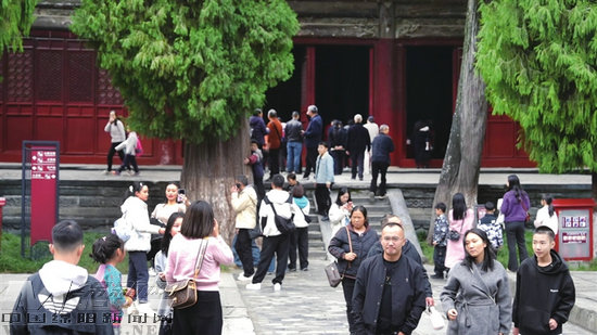 秋假期間,平武報(bào)恩寺迎來大量親子游客。 記者 任露瀟 攝