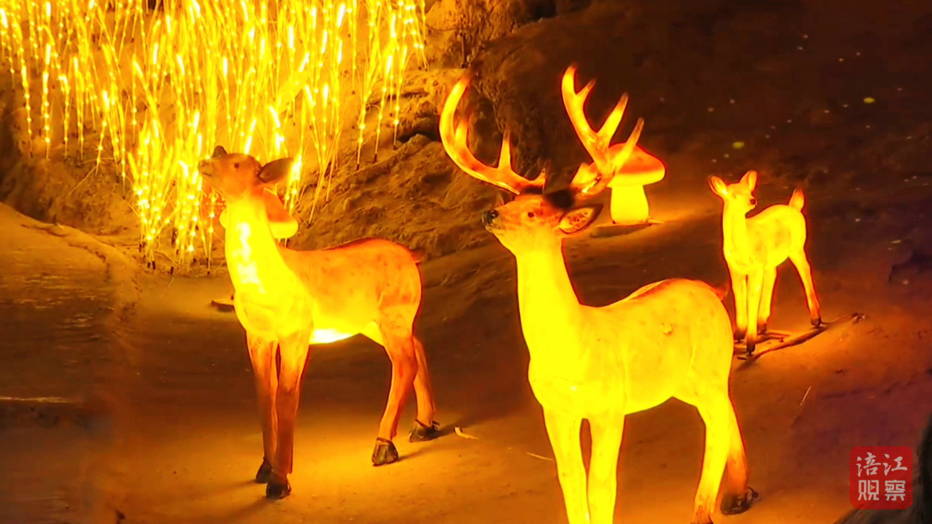 在佛爺洞景區(qū),全新升級的幻彩燈光秀吸引游客紛至沓來。