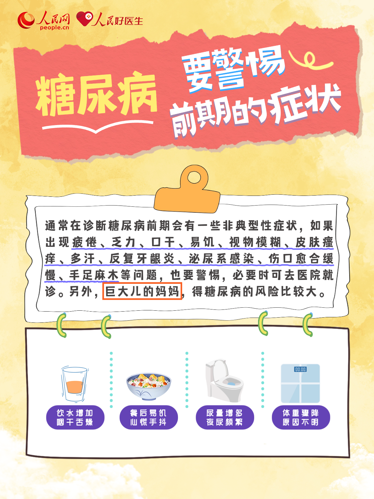 糖尿病尤其是2型糖尿病并非是“突然降臨”的疾病,其發(fā)生發(fā)展往往是一個(gè)漫長(zhǎng)而隱匿的過程。在早期,身體其實(shí)早已拉響“警報(bào)”!出現(xiàn)哪些癥狀需要警惕糖尿病?得了糖尿病該怎么辦?