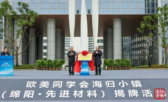 上午10時(shí)40分許,丁仲禮、普布頓珠共同為歐美同學(xué)會海歸小鎮(zhèn)(綿陽·先進(jìn)材料)揭牌。