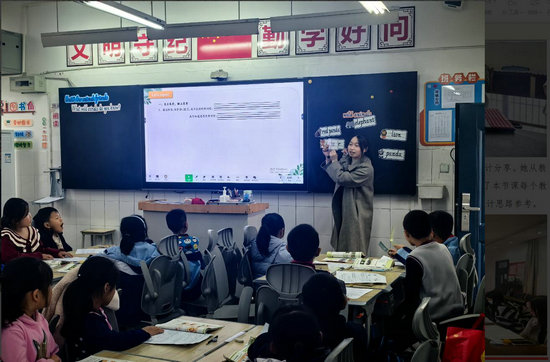 活動伊始,五里路小學(xué)顏聰老師在仙鶴小學(xué)執(zhí)教《Our animal friends》part B研討課。課堂上,顏老師充分調(diào)動學(xué)生積極性,學(xué)生熱情高漲、踴躍舉手,課堂互動頻繁,氛圍熱烈,高效達(dá)成單元教學(xué)目標(biāo)。