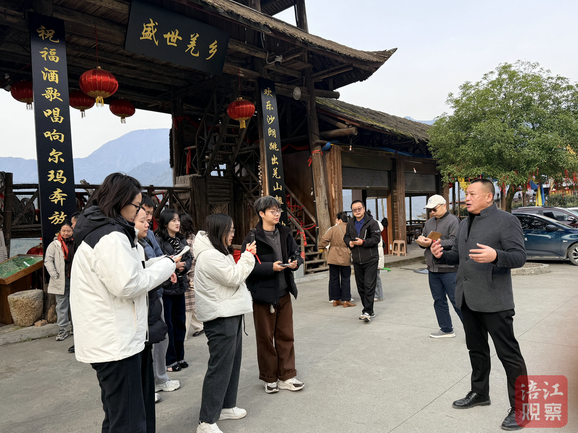 初冬的羌寨,歌聲悠揚(yáng),酒香四溢。寨門前,身著傳統(tǒng)羌族服飾的村民手捧咂酒、唱起迎客歌,用最隆重的禮節(jié)歡迎采訪團(tuán)的到來。
