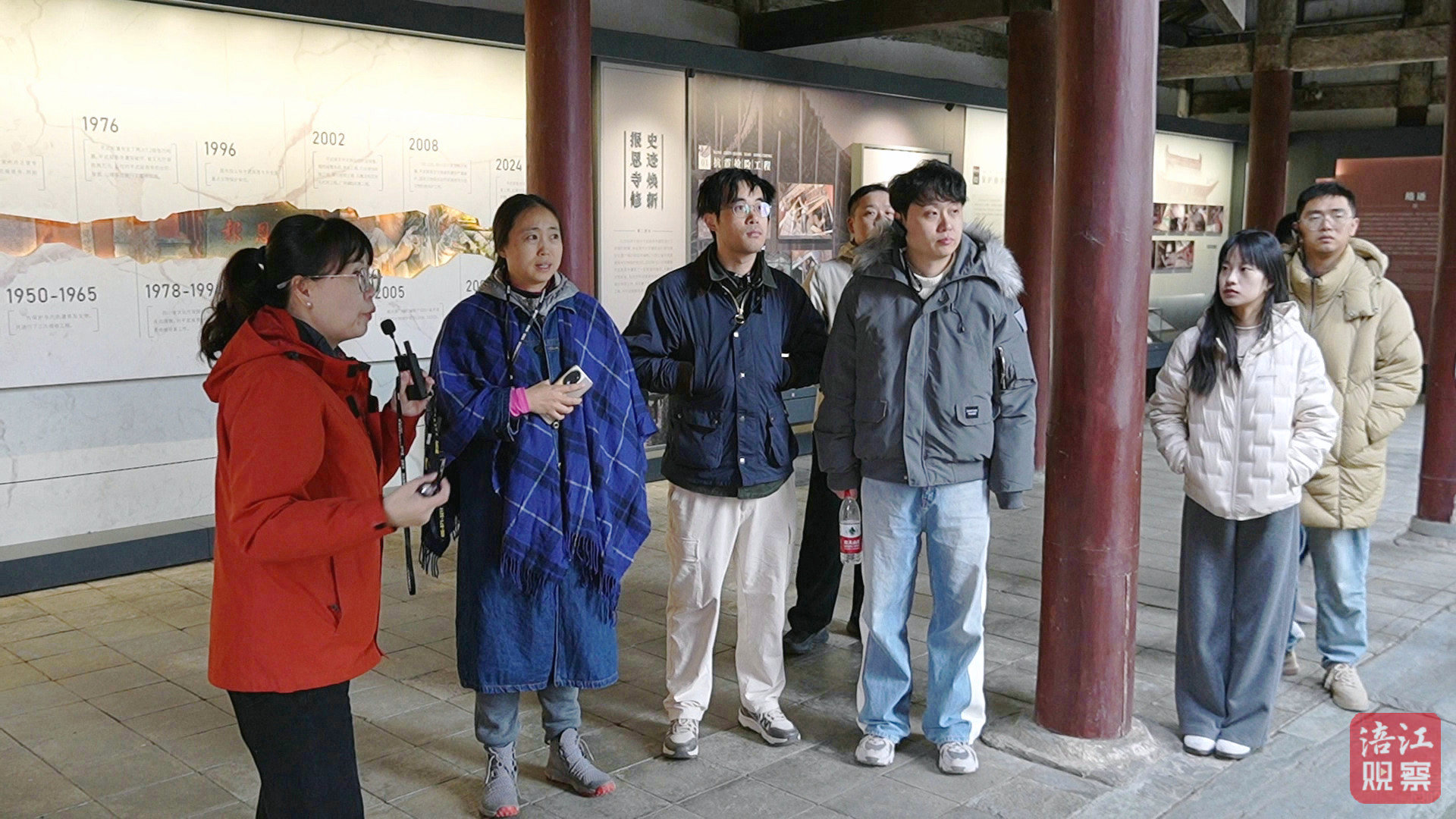 媒體記者們的鏡頭追隨著彩繪壁畫的細(xì)膩筆觸、轉(zhuǎn)輪經(jīng)藏的古樸紋路緩緩移動(dòng),筆端記錄著千手觀音的莊嚴(yán)神態(tài)與斗拱的精巧構(gòu)造,不時(shí)向講解人員詢問(wèn)古建筑保護(hù)細(xì)節(jié)與文旅融合路徑,在飛檐風(fēng)鈴的清響中,探尋這座大明遺珠的過(guò)往與新生。