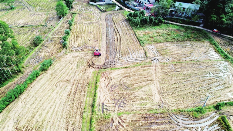 永福農機專業(yè)合作社生產負責人楊興富指著播種機告訴記者:“這是油菜小麥氣送式聯(lián)合播種機,可一次性完成旋耕、播種、施肥、覆土等全套工序,一天可以作業(yè)土地30多畝。通過預設參數(shù)提前設置好行距比,還能精準控制每畝地的播種量和施肥量,確保農業(yè)生產的標準化、精細化。”