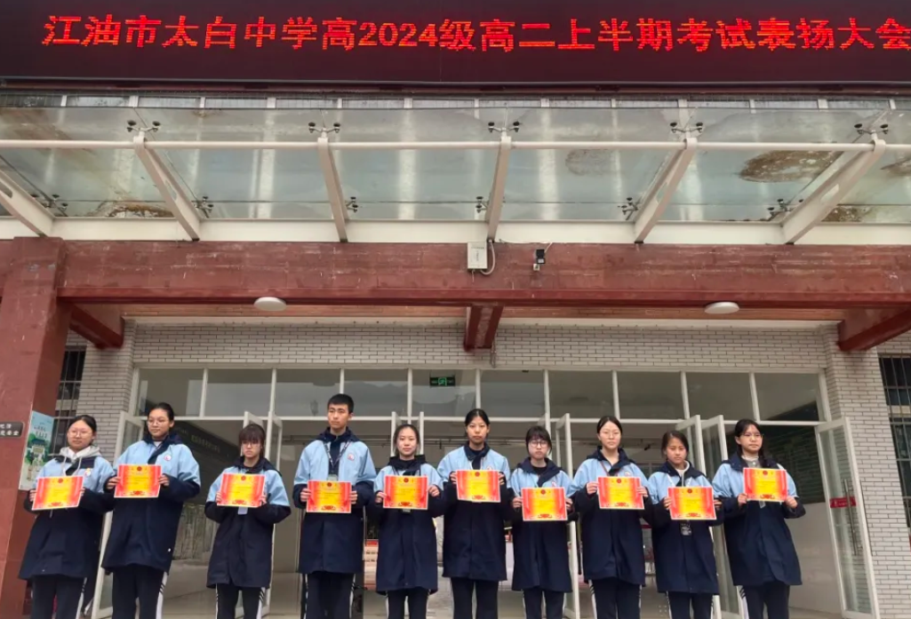 今日之表揚,非終點乃序章;此刻之榮光,為階梯向蒼穹。愿君持書劍,意氣凌青云;以今日之我,勝昨日之我。盼太白學(xué)子,乘風(fēng)好去,長空萬里,直下看山河。(嚴莉清 黃友勇)