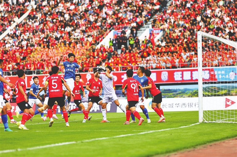 綠茵場上,綿陽九洲長虹隊(duì)的球員們涵蓋“00后”小將與“80后”老將,身份遍及教師、青訓(xùn)員、高校學(xué)生。他們因熱愛集結(jié),在賽場上奮勇爭先、頑強(qiáng)拼搏。10月7日,綿陽隊(duì)主場迎戰(zhàn)德陽隊(duì),面對率先進(jìn)球的強(qiáng)大對手,綿陽隊(duì)始終沒有放棄,在最后的補(bǔ)時階段成功逼平德陽隊(duì),用汗水向全場球迷詮釋了“不拋棄、不放棄”的體育精神。