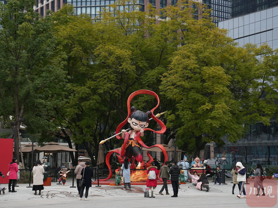 成都市民打卡哪吒雕像。韋維 攝