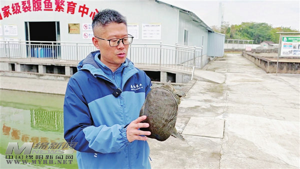 甲魚養(yǎng)殖基地負責(zé)人陳彬展示甲魚新品種“圌山1號”。 記者 陳元松 攝