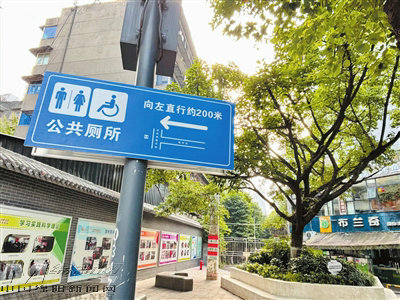 “我們前期調(diào)研時發(fā)現(xiàn),不少市民尤其是外來游客、網(wǎng)約車司機,在陌生區(qū)域找?guī)W咴┩髀?,有的甚至因為找不到廁所耽誤事。”胡浩然說,這些導(dǎo)示牌看似小,卻是打通便民服務(wù)“最后一百米”的關(guān)鍵——不用再依賴手機信號,不用再反復(fù)問路,抬頭看見牌子,就能快速找到“方便”之處。